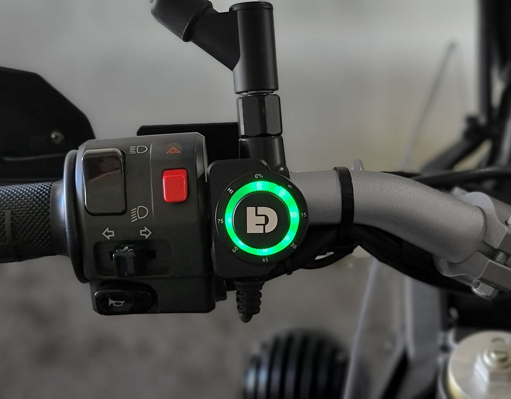 Our ground-breaking DialDim™ Lighting Controller features a multicolor halo dimming switch that allows you to independently turn on/off and dim two sets of auxiliary lights from a single consolidated wiring harness. The LED halo switch displays your exact settings and allows for effortless dimming on the fly. The blue halo controls light set one and the green halo controls light set two; simply double click to switch between the two circuits.
