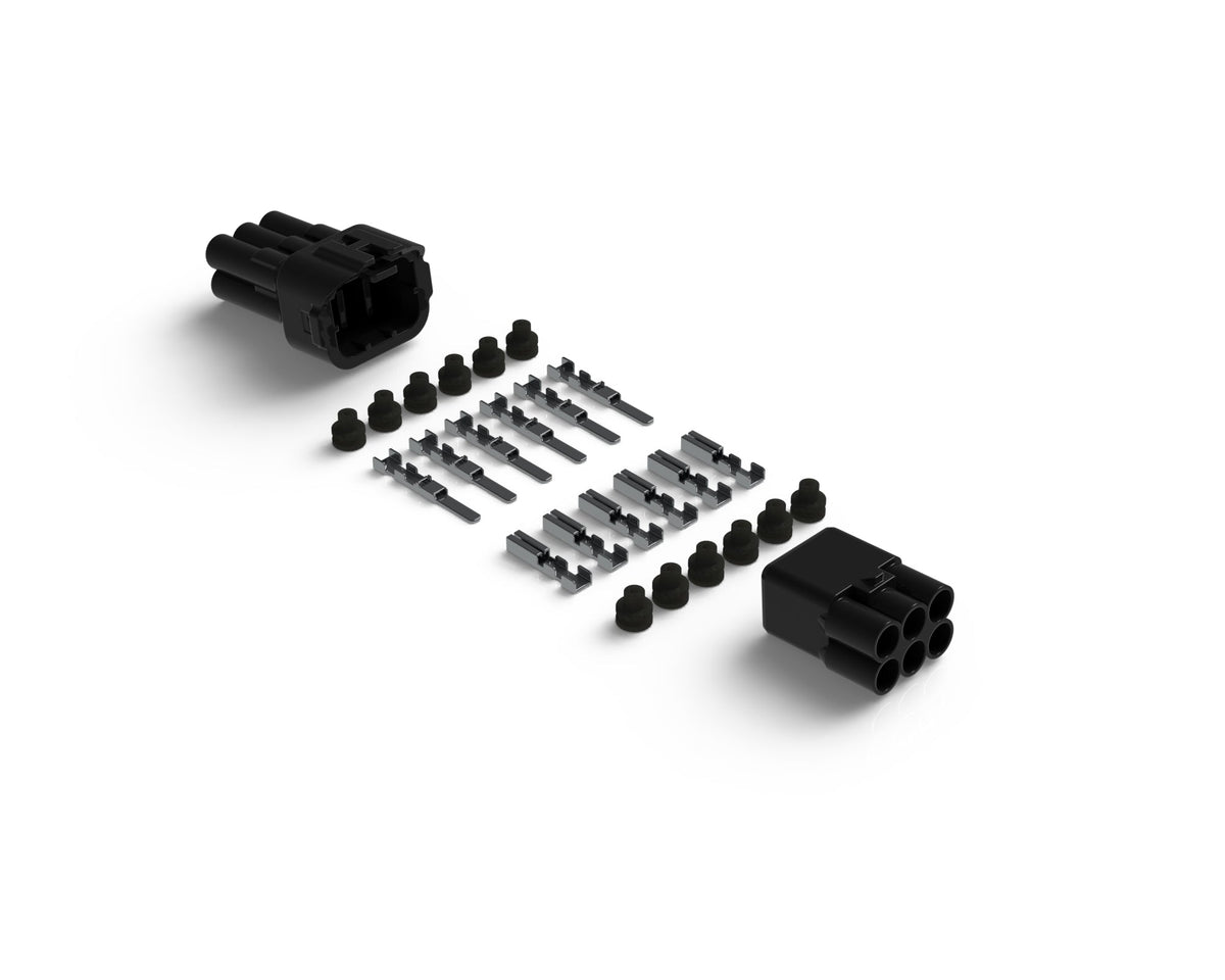 Te wysokiej jakości wodoodporne złącza serii MT są stosowane w światłach i uprzężach DENALI 2.0. Zestaw zawiera złącze męskie i żeńskie, zaciski na zaciskach oraz wodoodporne uszczelki do przewodów. Za pomocą niedrogiego narzędzia do zaciskania (DNL.CTR.CRIMP) złącza te można w ciągu kilku sekund zacisnąć na przewodach w celu modyfikacji, dostosowania lub wymiany połączeń elektrycznych.