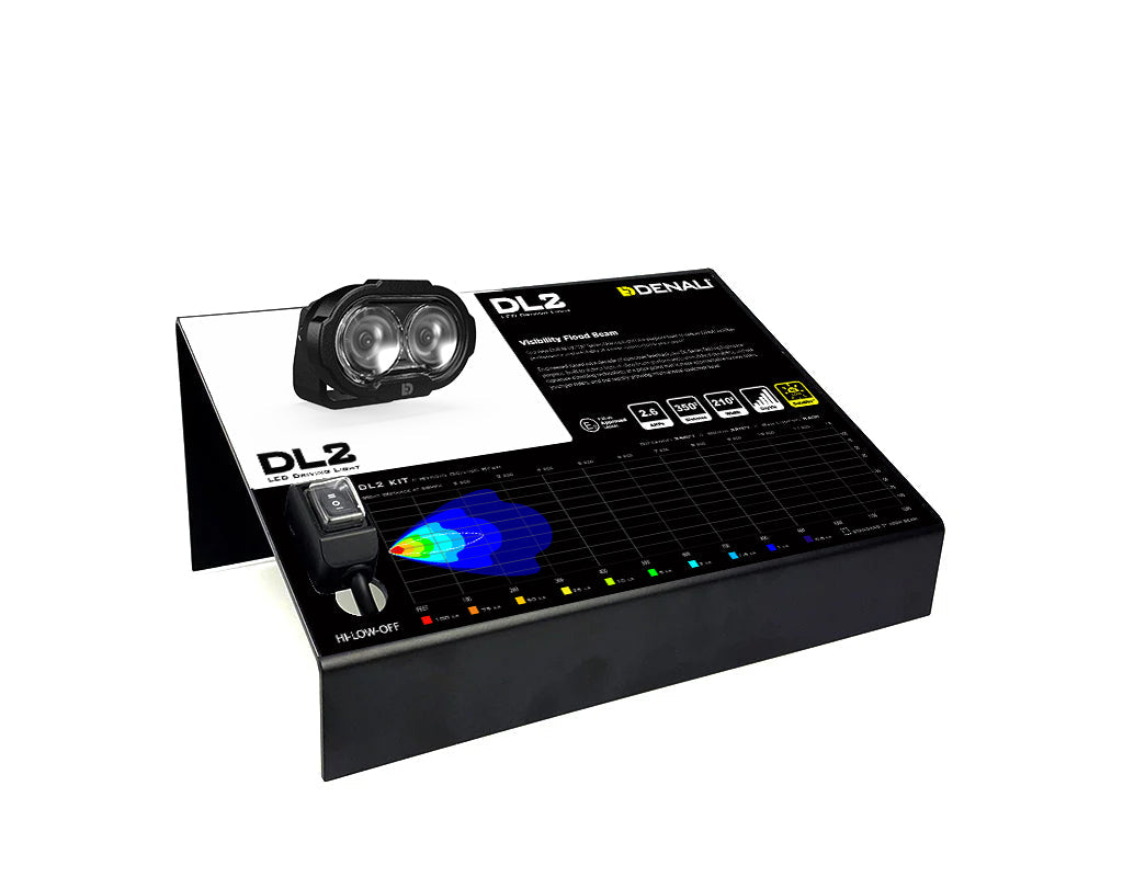 Seeing is believing! Once your customers see the power of the DENALI DL2 they’ll be sold. The interactive dealer display can be plugged directly into an 100v-240v outlet, or by using the included battery power wiring adapter, the display can be powered from a standard motorcycle battery, perfect for those remote events where power isn’t available. Sturdy metal construction allows mounting the unit on a shelf, counter or slat-wall (brackets not included).